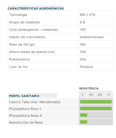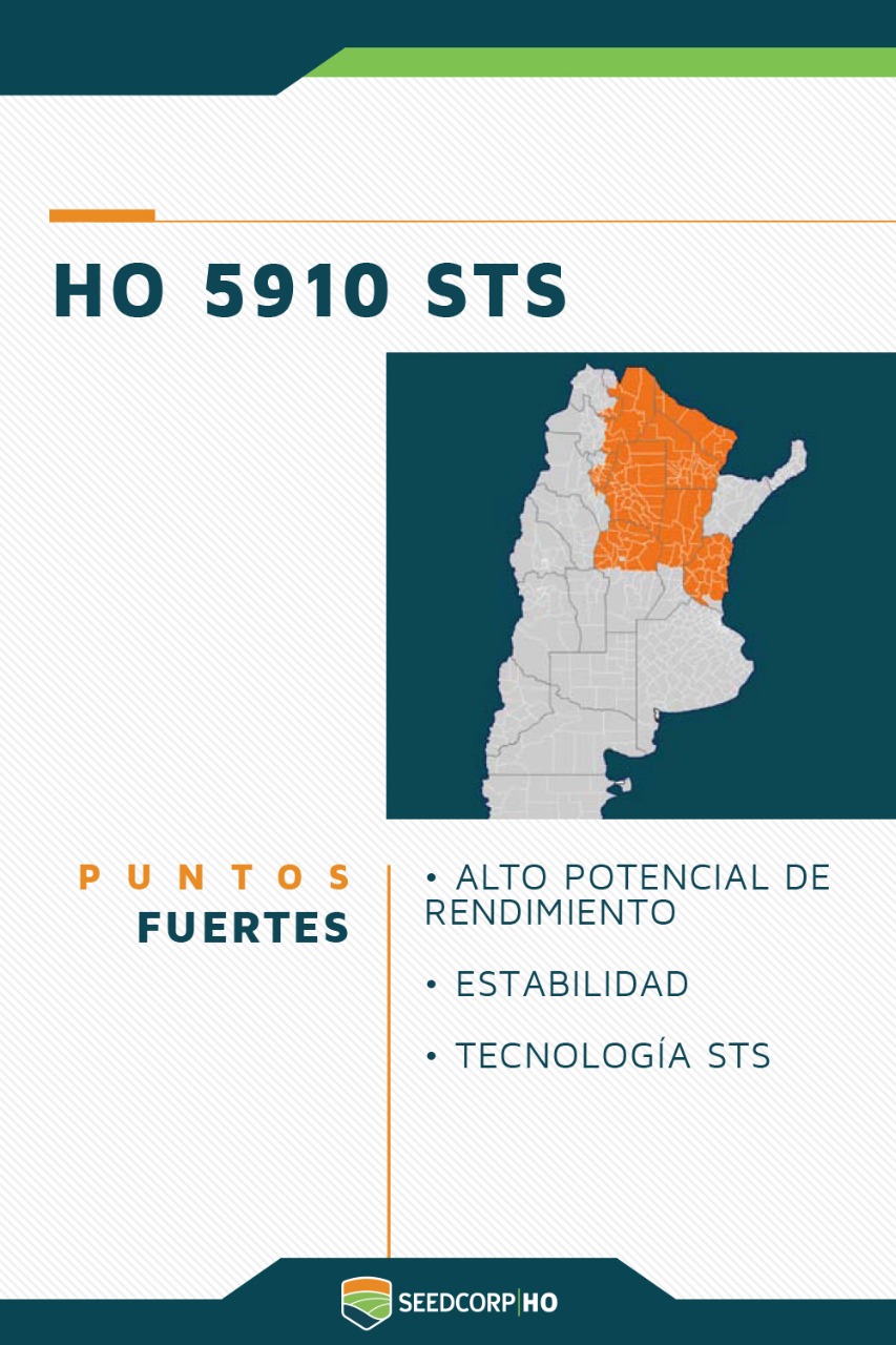 Horus Seeds HO 5910 STS HO 5910 STS (RR1 Technology) Variety with great adaptability to central and northern areas of the country, with high yield potential and STS technology. Download the Horus catalogs here: Product complete I want an advisor to contact me Send